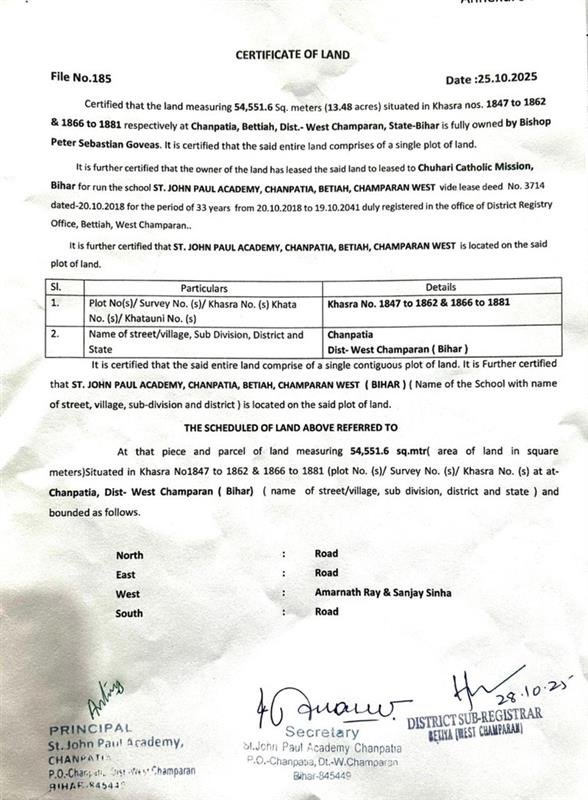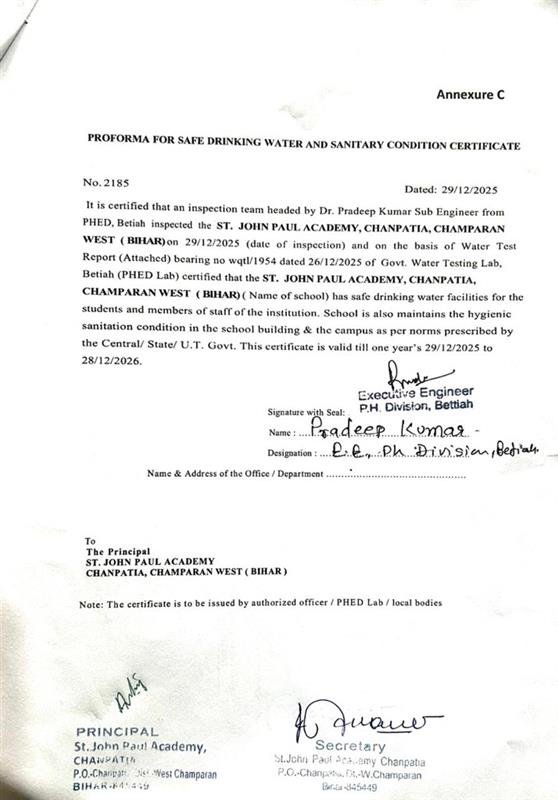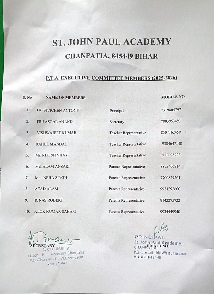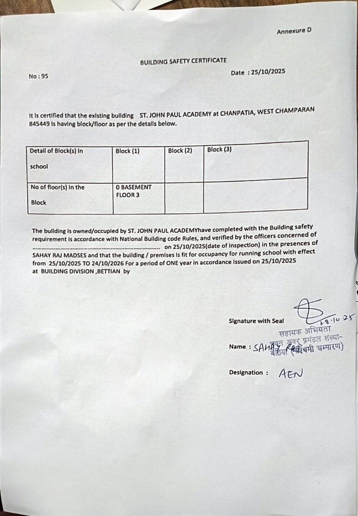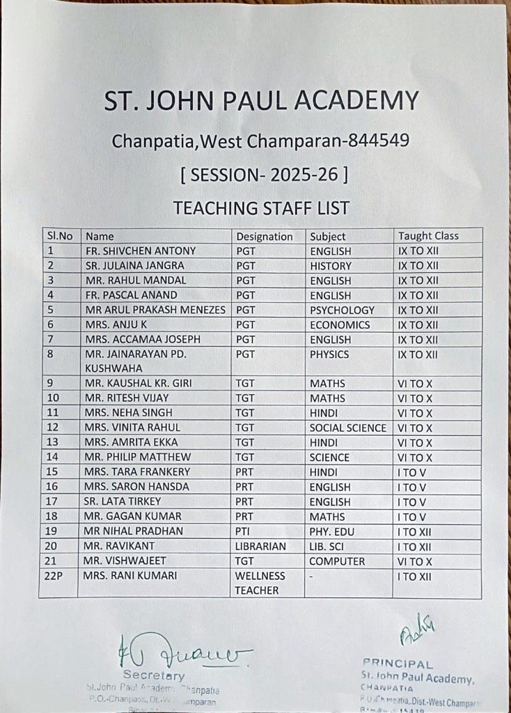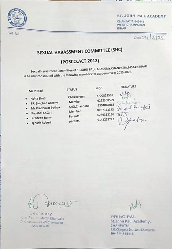 | Name of the School with Address | St. John Paul Academy, Chanpatia |